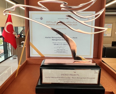 Dubai Hükümeti Yüksek Enerji Konseyi (DSCE) tarafından iki yılda bir gerçekleştirilen bu yıl ise beşincisi düzenlenen Emirates Enerji Ödülleri’ne 1 Ekim’de Dubai Dünya Ticaret Merkezi’nde katılım sağlayarak, Atık Yakma ve Enerji Üretim Tesisimiz ile Dünya Yeşil Ekonomi Zirvesi platformunda Büyük Enerji Projeleri kategorisinde İBB Atık Yönetimi Şube Müdürlüğü olarak ödül ve sertifika kazandık.