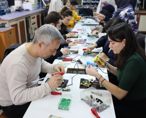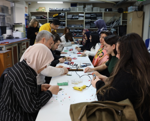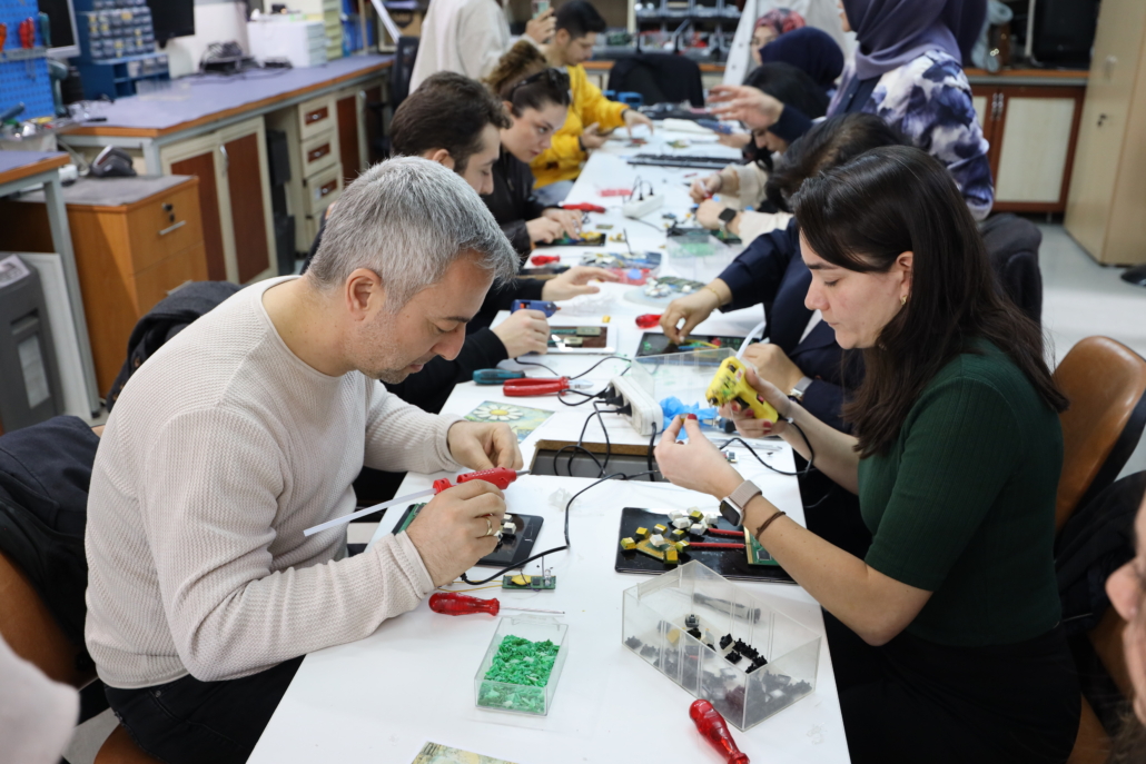 Çevre, Şehircilik ve İklim Değişikliği Bakanlığı tarafından belirlenen 2026 yılı Şubat ayı “Elektrik- Elektronik ve Metal Atıklar” teması kapsamında, Yenibosna Elektronik Atık Atölyemizde İBB personelinin katılımıyla elektronik atıklarının yeniden değerlendirilmesine yönelik bir atölye etkinliği gerçekleştirildi. Etkinlik öncesinde konu ile ilgili bir sunum yapıldı. Kullanım ömrünü tamamlamış elektronik atık parçalarından magnet süsü, tabletler üstünde görsel çalışma etkinlikleri yapıldı.