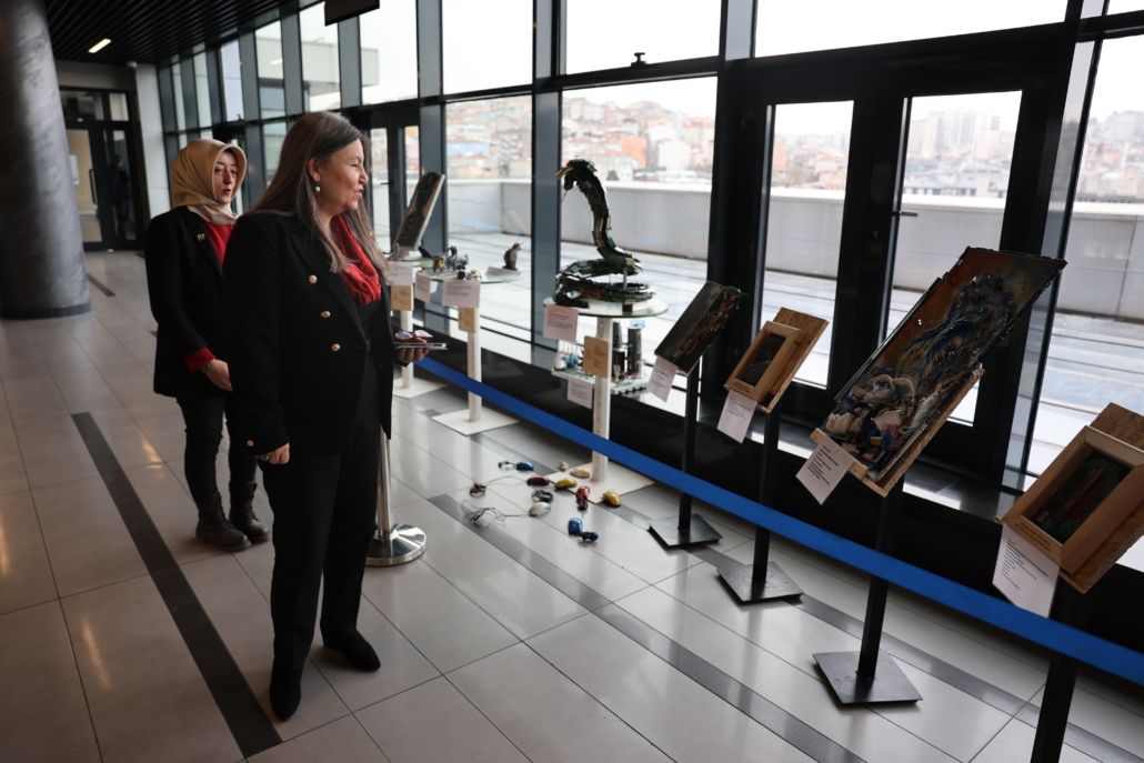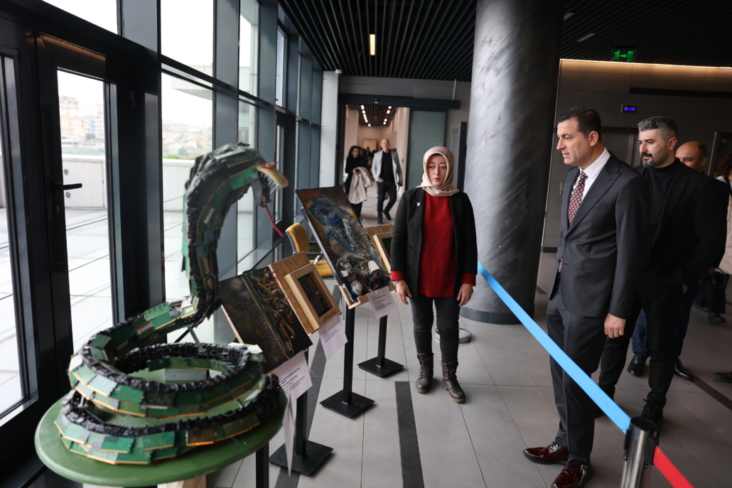 Çevre, Şehircilik ve İklim Değişikliği Bakanlığı tarafından belirlenen 2026 Yılı Sıfır Atık Tema Planı kapsamında Şubat ayı için Atık Yönetimi Şube Müdürlüğüne ait Elektronik Atık Atölyesinde İBB’nin kurumsal atıklarından tasarlanan “Elektronik Atıklardan İleri Dönüşüm Sergisi” katılımcılar tarafından ziyaret edilmiştir. Sergide, kullanım ömrünü tamamlamış elektronik atıklardan elde edilen ve ileri dönüşüm yaklaşımıyla yeniden tasarlanan ürünler katılımcılara tanıtılmış; elektronik atıkların çevresel etkileri ve geri kazanım süreçlerinin önemi hakkında bilgilendirme yapılmıştır. Sergi, sıfır atık anlayışının yalnızca toplama ve ayrıştırma süreçleriyle sınırlı kalmayıp, kaynakların yeniden değer kazanmasını hedefleyen bütüncül bir yaklaşım olduğunu somut örneklerle ortaya koymuştur.