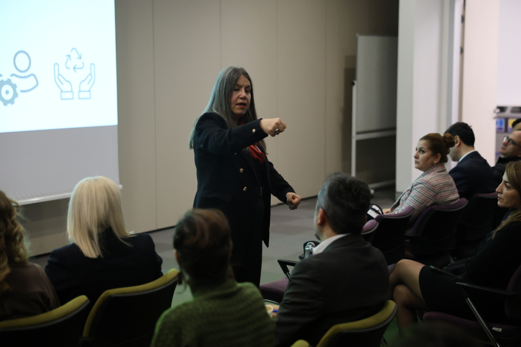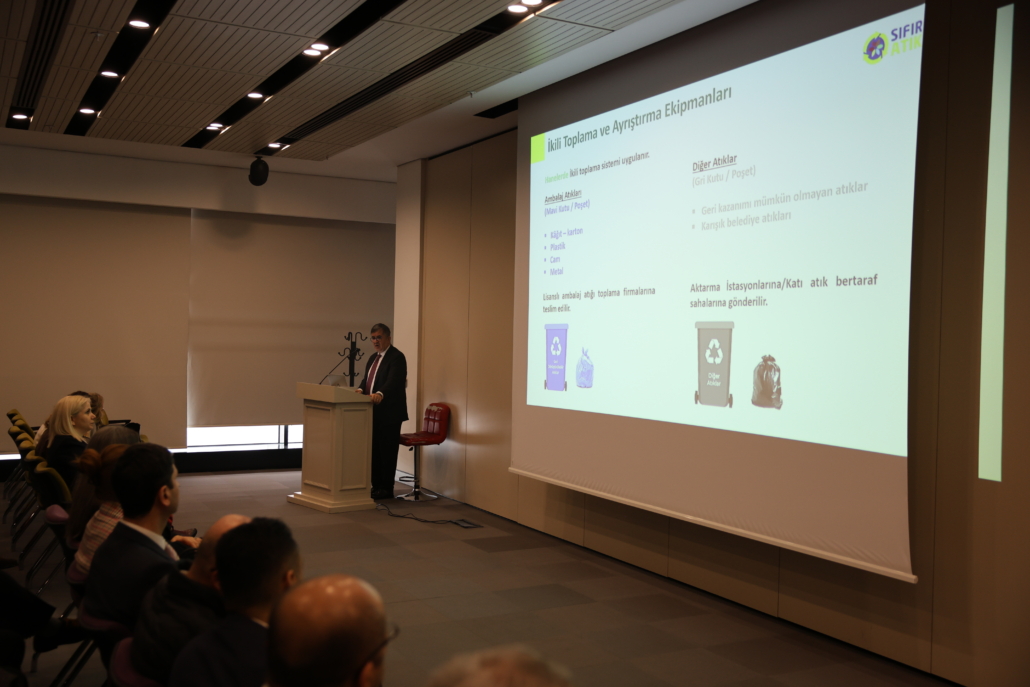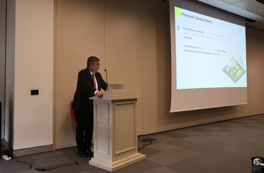 Toplantı kapsamında Atık Yönetimi Şube Müdürü Sayın Dr. Saffet ALTINDAĞ tarafından “Sıfır Atık Projesi İstanbul Modeli” başlıklı sunum gerçekleştirilmiştir. Sunumun ardından Mentimeter uygulaması aracılığıyla ilçe belediyesi temsilcilerine yöneltilen sorularla interaktif bir değerlendirme yapılmış, uygulamaya yönelik görüş ve öneriler alınmıştır.
