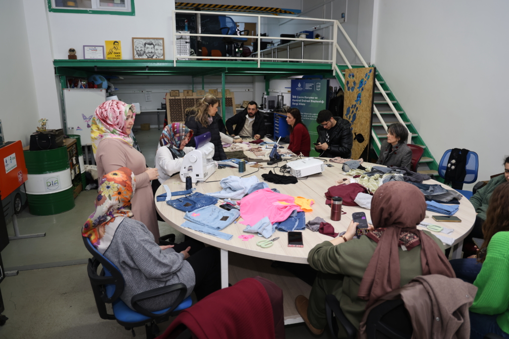 T.C. Çevre, Şehircilik ve İklim Değişikliği Bakanlığı tarafından 2026 yılı Ocak ayı için belirlenen “Önle, Azalt, Yeniden Kullan!” teması kapsamında, Döngüsel İşler Atölyemizde bez çanta yapım etkinliği gerçekleştirdik. Etkinlikte tekstil atıkları, katılımcılarımızın özgün tasarımlarıyla yeniden hayat buldu. Kumaşlar dönüştü, fikirler üretime döndü.