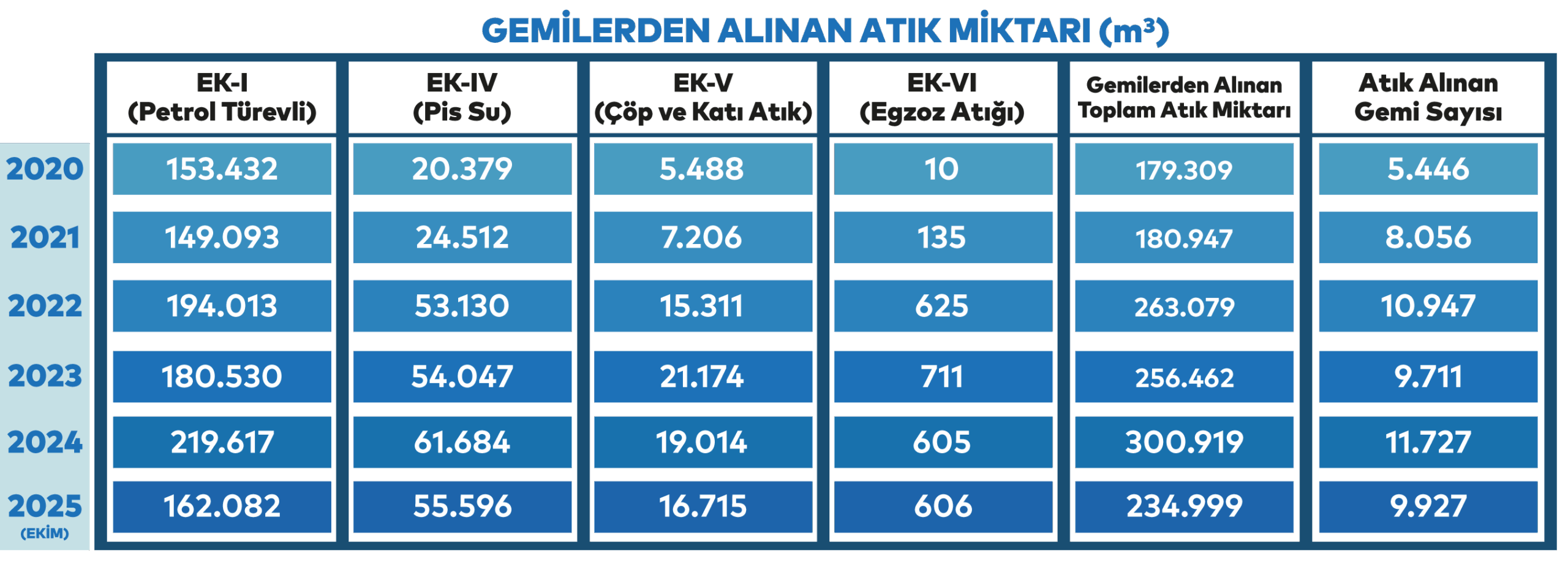 - EK-VI kapsamında ise egzoz gazı temizlenmesinden kaynaklı atıklar ve yük artıkları alınmaktadır.