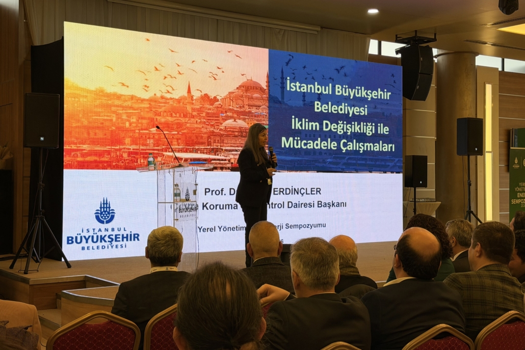 Erdinçler, İstanbul’da hazırlanan ve uygulamaya alınan İklim Değişikliği Eylem Planı (CAP), Sürdürülebilir Enerji ve İklim Eylem Planı (SECAP) ile Yeşil Şehir Eylem Planı (GCAP) süreçlerine ilişkin bilgi vererek, kentin düşük karbonlu ve dirençli bir yapıya dönüşümüne yönelik stratejik çerçeveyi aktardı.